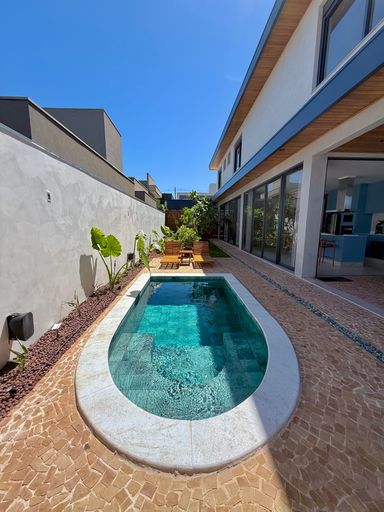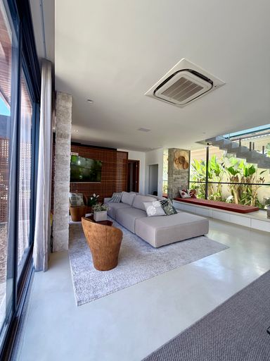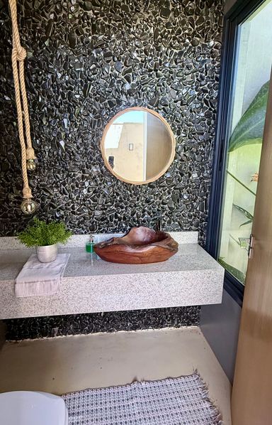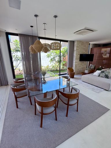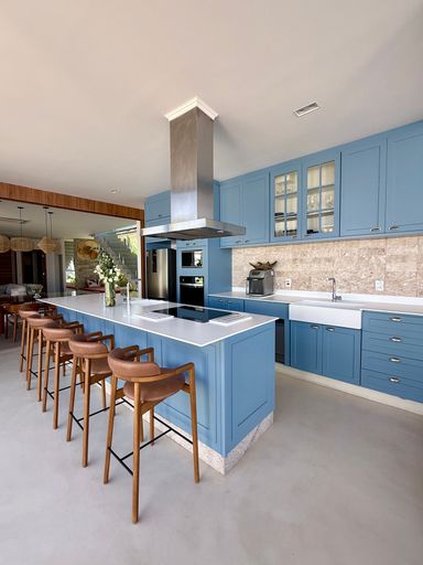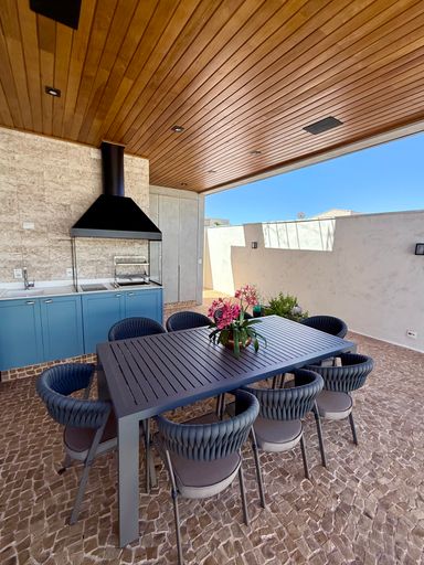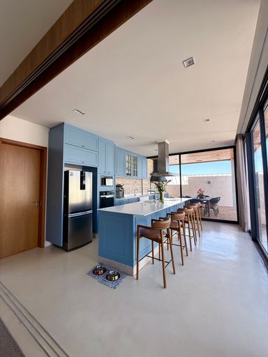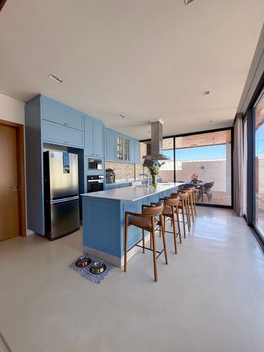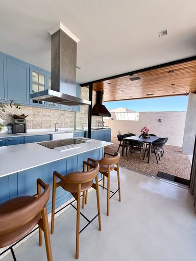 ➡️ Cozinha com balcões em corean, sendo integrada ao gourmet