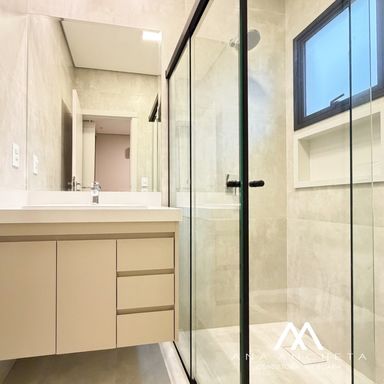 3 suítes , sendo uma master com closet amplo , pias e chuveiro duplo