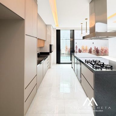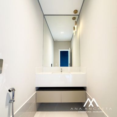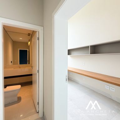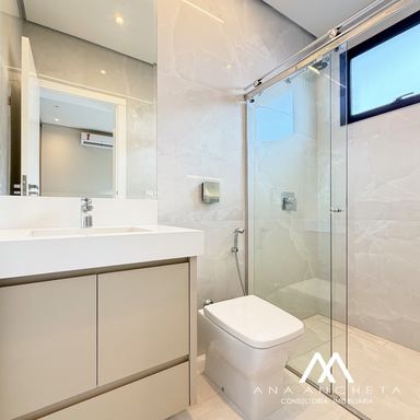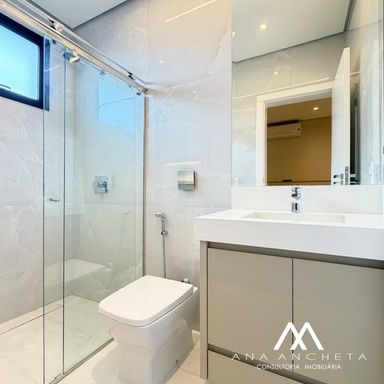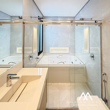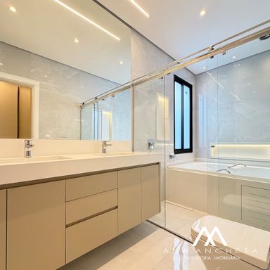 3 suítes , sendo uma master com closet amplo , banheira , pias e chuveiro duplo