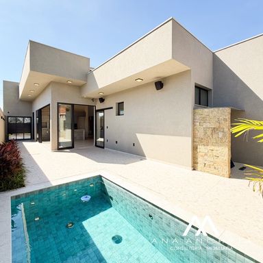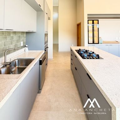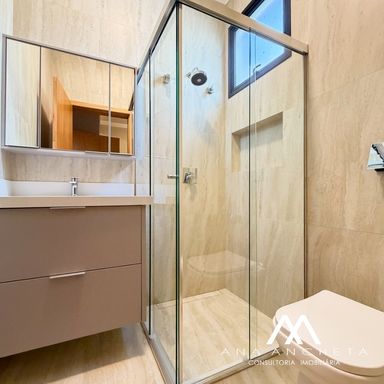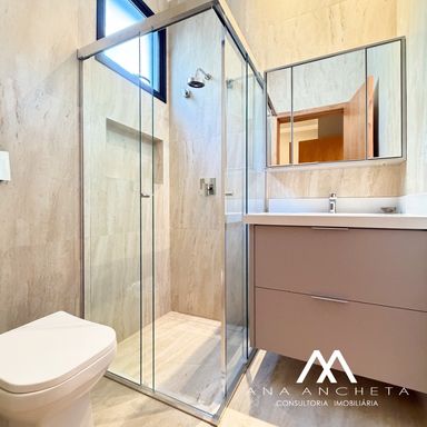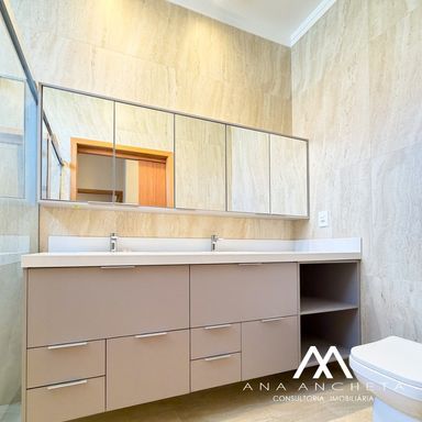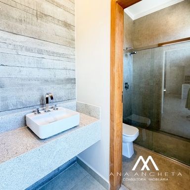 3 suítes, sendo 1 master com closet amplo, duchas e pia dupla