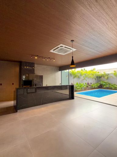 4 suítes , sendo 1 delas master com closet , lavabo , escritório , Home , gourmet amplo com churrasqueira e forno , piscina em alvenaria com aquecimento , paisagismo completo , projeto de iluminação