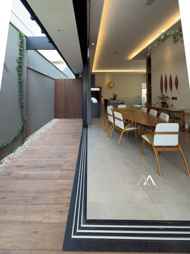 Casa térrea com 1 cômodo subterrâneo podendo ser Home Cinema , lounge, espaço gourmet / Bar .