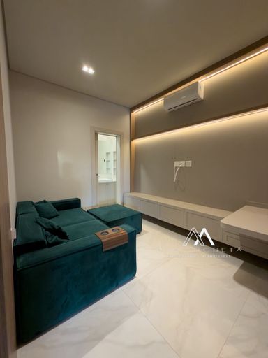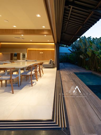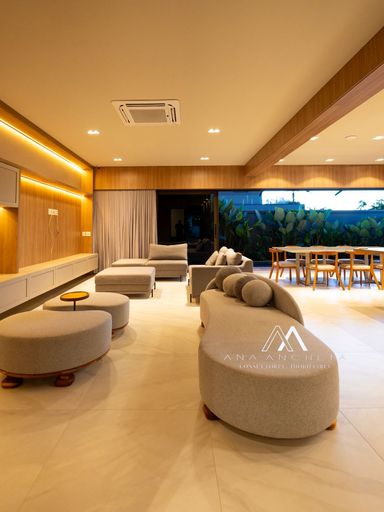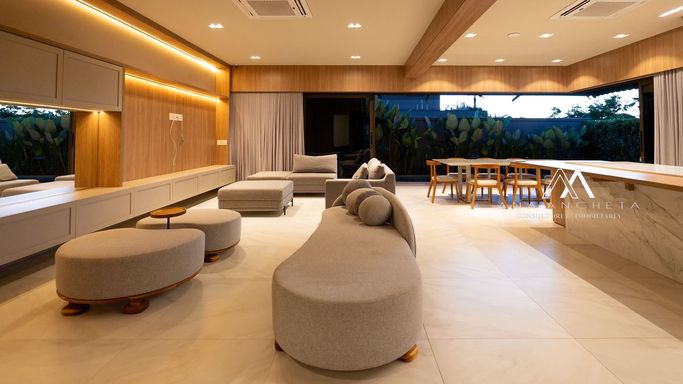 Ampla área gourmet com churrasqueira a gás e balcão refrigerado