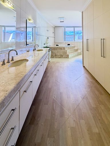 4 suítes , sendo 1 delas master com closet amplo , banheira , duchas e pias duplas