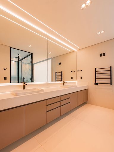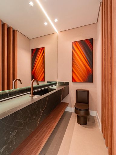 5 Suítes com closet (sendo a máster com closet, cuba e chuveiro duplo, banheira, toalheiro térmico e vaso sanitário inteligente)