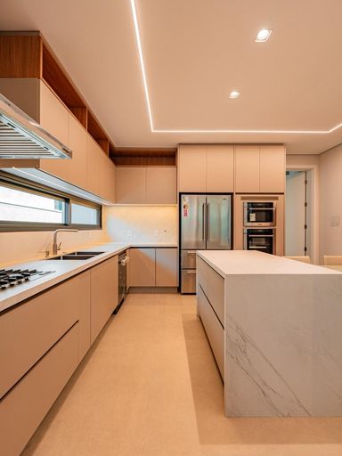 Cozinha totalmente equipada (geladeira, forno, micro-ondas, cooktop, maquina de lavar louça Tecno e coifa Pirâmide)