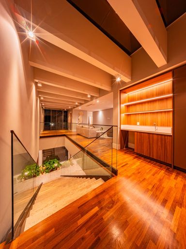Piso superior, revestido em taco madeira maciça
