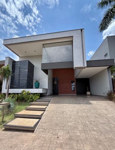 Condomínio Golden Park Residence Projeto contemporâneo de altíssimo padrão construtivo. Fachada moderna com uma excelente volumetria, proporcionando elegância e sofisticação. Espaço social integrado com vista privilegiada para uma lindíssima cascata suspensa e acesso a piscina. Residência rica em móveis planejados e todos os ambientes são climatizados. Considerada um semi sobrado pois possui pavimento superior com um cômodo com sacada e banheiro : podendo ter dupla funcionalidade, ser um quarto ou uma home dependendo da necessidade do morador. Ótima localização dentro do condomínio. Características e infraestrutura: Terreno 430,26m² Construção 273,28m² Pavimento superior com um cômodo com sacada + banheiro 04 Suítes sendo uma master (com closet, banheira, cuba e chuveiro duplo) Área de iluminação com paisagismo Lavabo Escritório Living/Home com Adega Ampla Área Gourmet /Jantar (até 3 ambientes) - com ar condicionado Cassete Lavanderia planejada Banheiro piscina Piscina com aquecimento solar Cascata suspensa Toda climatizada Porta Balcão automatizada em todos os quartos e no pavimento superior Rica em móveis e painéis planejados Paisagismo Esquadria de alumínio preta sob medida linha Gold Portas laqueadas de branco Toda forrada de gesso e iluminada Churrasqueira a gás e churrasqueira a carvão com grill automático Balcão Refrigerado Infra e hidráulica para futura cervejeira (podendo combinar instalação na negociação) Coifa sob medida Cooktop Calha úmida e lixeira embutida na bancada Cristaleira iluminada Bancada e ilha gourmet no granito Calacata Escada interna iluminada e no granito Calacata Roupeiro planejado no corredor Fachada com revestimento natural filete Matrix grafite e perfil de led Revestimentos e pisos em porcelanato Villagres