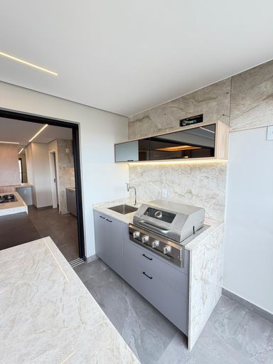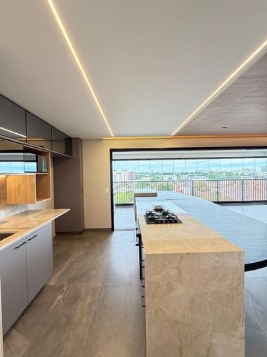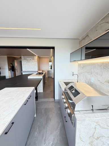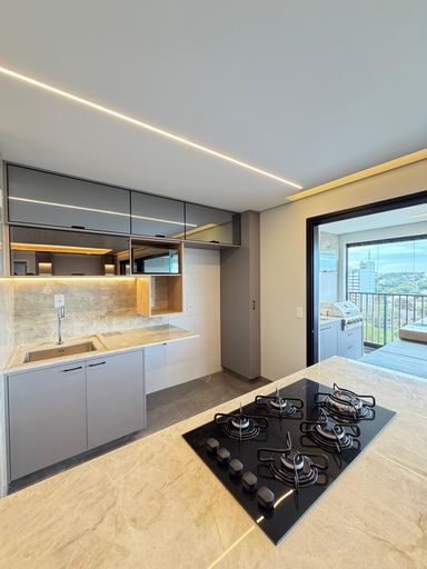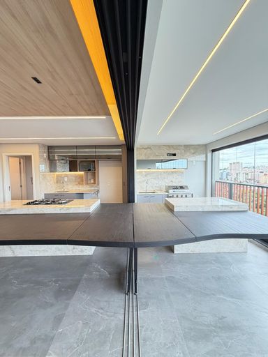 Sala com cozinha gourmet