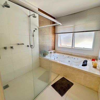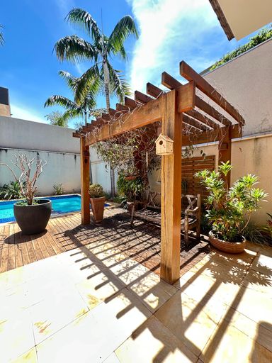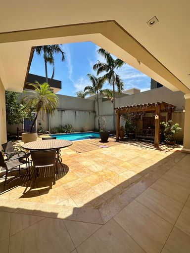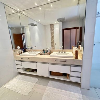 3 suítes , sendo uma delas master com closet e hidro , despensa , área gourmet completa com balcões refrigerado e chopeira personalizado, piscina aquecida , rica em armários.