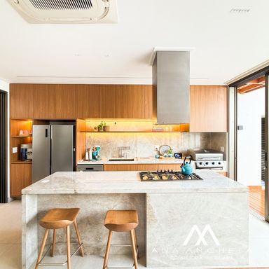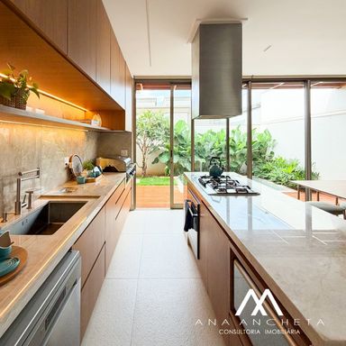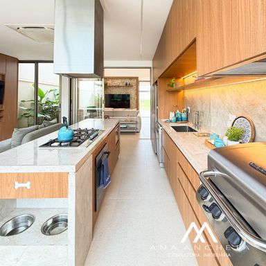 • Cozinha integrada ao gourmet - microondas , forno elétrico , churrasqueira , lava louças