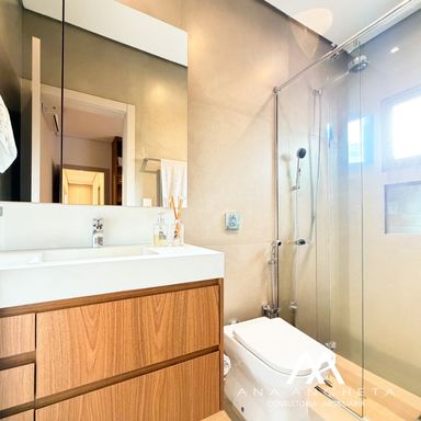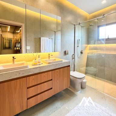 • 3 suítes - sendo 1 master com closet em L , em espelho reflecta bronze , cubas e duchas duplas