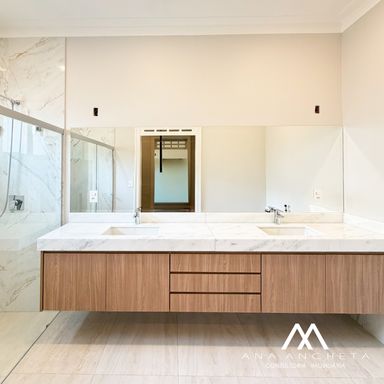 3 suítes , sendo 1 master com closet amplo em vidro reflecta, cubas e chuveiro duplos