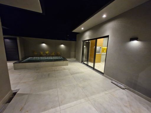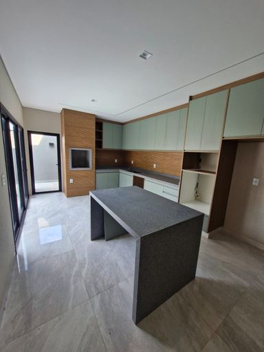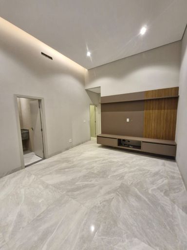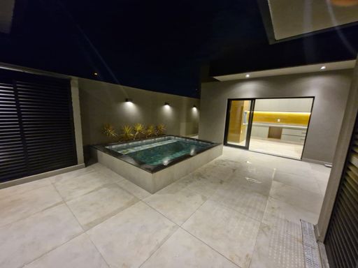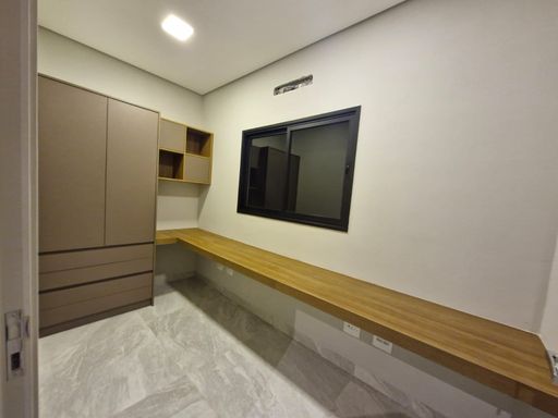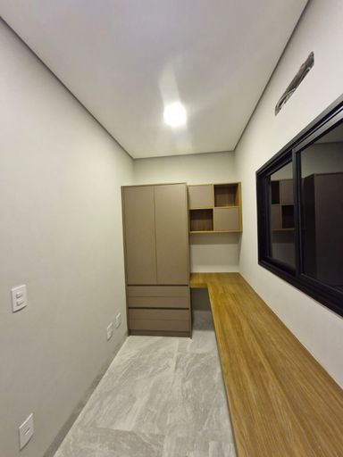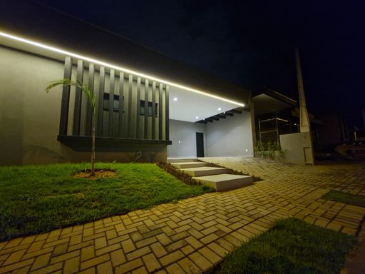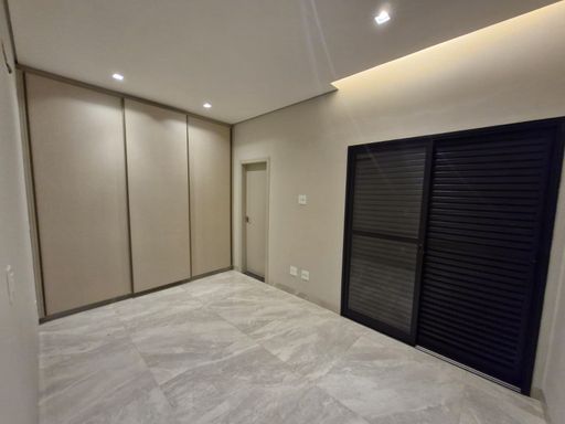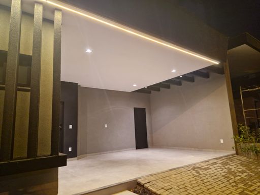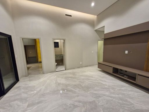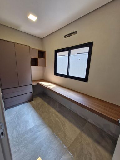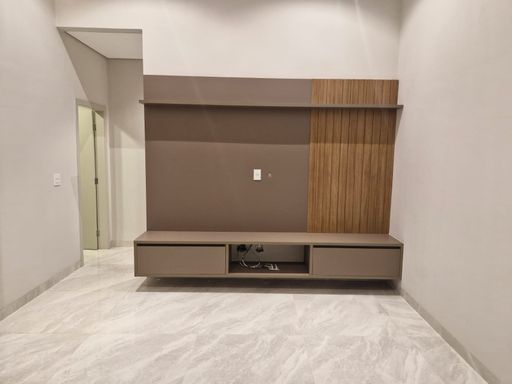 Casa com fachada moderna, 3 suítes amplas, sendo uma Master com rack e cabeceira.