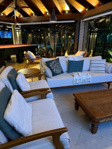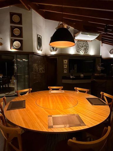 varanda gourmet climatizada com dois aparelhos de ar-condicionado piso/teto de 30.000 BTUs cada;