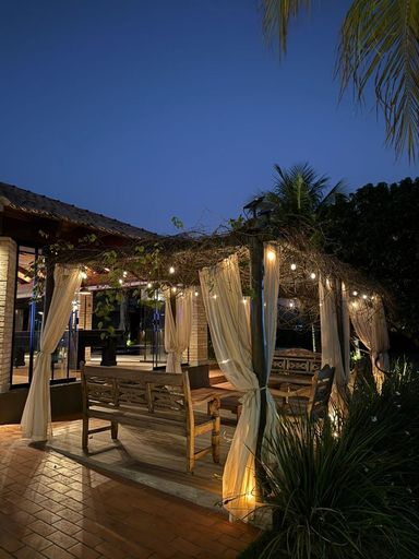 forno de pizza, máquina de gelo, sorveteira, cervejeira, duas geladeiras com freezer, microondas, fogão cooktop;