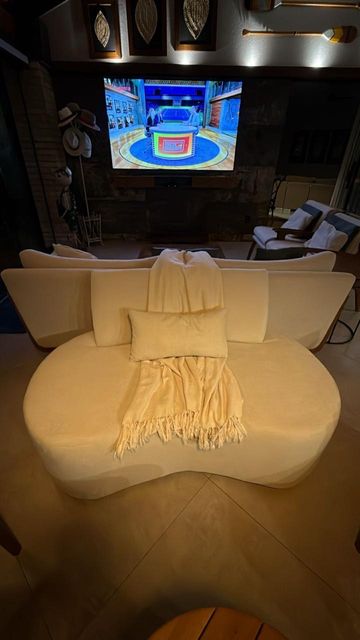 uma TV Sansung de 85 polegadas na varanda gourmet;